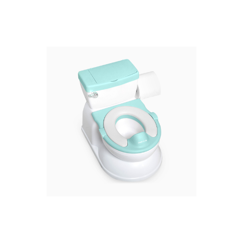 The Real Feel Potty Chair from Jool Baby has the look and feel of a real toilet. It includes a flushing sound (with cheering!) and a toilet paper rod to encourage potty training success. The built-in splash guard keeps things clean, plus it has a spacious storage area for wipes and other accessories.